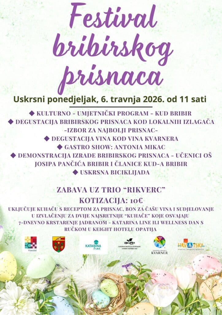 Uskrsni ponedjeljak, 6. travnja 2026., donosi jedno od najautentičnijih proljetnih događanja u Vinodolu – 4. Festival bribirskog prisnaca, koji će s početkom u 11:00 sati ponovno okupiti ljubitelje tradicije, domaće kuhinje i dobrog društva u samom srcu Bribira.