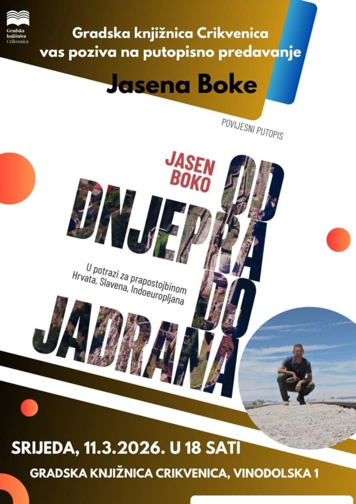 Gradska knjižnica Crikvenica poziva sve zainteresirane na putopisno predavanje Jasena Boke „Od Dnjepra do Jadrana“ koje će se održati u srijedu, 11. ožujka u Središnjem odjelu, Vinodolska 1.