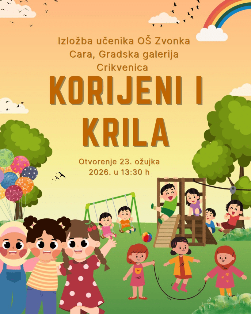U Gradskoj galeriji Crikvenica danas, 23. ožujka u 13:30 sati, otvorena je izložba „Korijeni i krila“ učenika Osnovne škole Zvonka Cara.