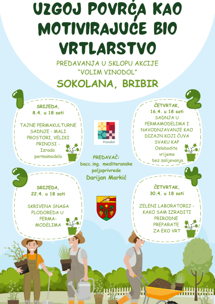 U sklopu akcije “Volim Vinodol”, TZO Vinodolske općine poziva sve zainteresirane na ciklus od 4 predavanja pod nazivom “Uzgoj povrća kao motivirajuće bio vrtlarstvo”, koja će se održati u Sokolani u Bribiru tijekom mjeseca travnja.