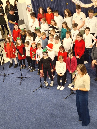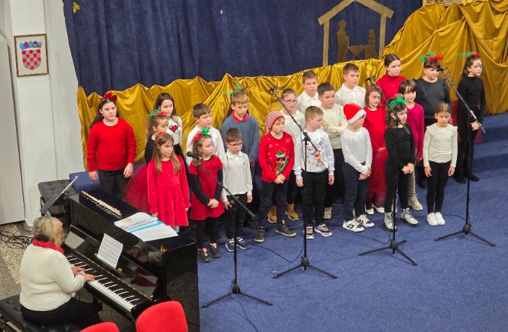 Mali zbor Glazbene škole izveo je pjesmu Din dan don, a na samom kraju mali i veliki zbor Glazbene škole zajednički su izveli pjesmu Božić je judi uz klavirsku pratnju Ljerke Hegedušić.