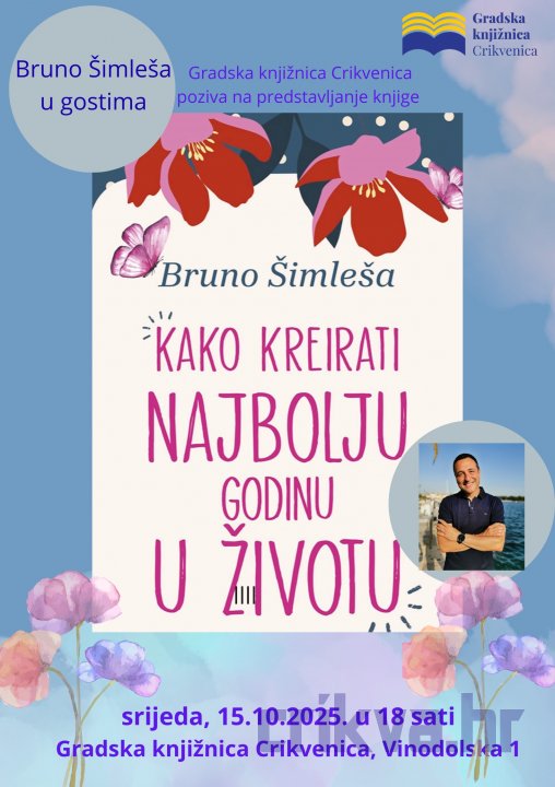 Gradska knjižnica Crikvenica otvara Mjesec hrvatske knjige s Brunom Šimlešom i njegovom knjigom Kako kreirati najbolju godinu u životu - u srijedu, 15. listopada u Središnjem odjelu, Vinodolska 1.