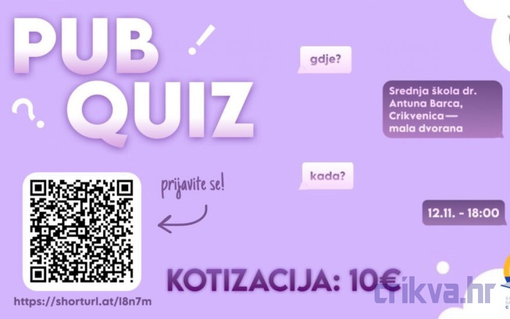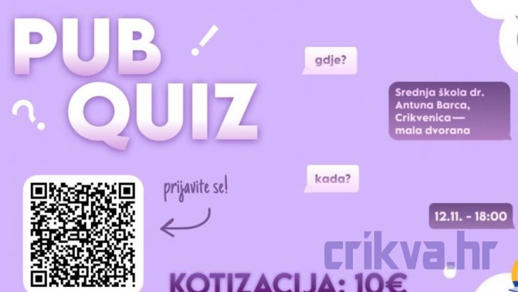 Ako volite kvizove, natjecateljski duh i dobru atmosferu, svakako dođite u SŠ dr. Antuna Barca Crikvenica 12. studenoga u 18 sati i provedite ugodnu večer uz pub kviz!