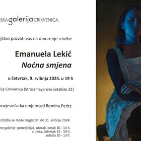 S velikim vas zadovoljstvom pozivamo na otvorenje izložbe "Noćna smjena" mlade autorice Emanuele Lekić, koje će se održati u četvrtak, 9. svibnja 2024. u 19 h u Gradskoj galeriji Crikvenica