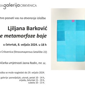 U četvrtak, 8. veljače 2024. će se, s početkom u 18 h, u Gradskoj galeriji Crikvenica, održati otvorenje izložbe "Svjetlosne metamorfoze boje" autorice Ljiljane Barković