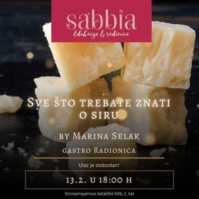 U restoranu "Sabbia" u utorak 13.2. od 18:00 do 20:00 sati održava se edukacija o siru, uz stručno vodstvo profesionalne degustatorice sira i dugogodišnje suradnice na projektima Gastronaut, Marine Selak