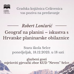 Predavanje će se održati u Staroj školi Selce u ponedjeljak, 18. prosinca s početkom u 18 sati.