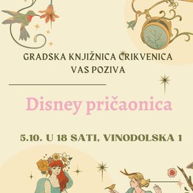 Gradska knjižnica Crikvenica u sklopu Dječjeg tjedna organizira "Disneyevu pričaonicu" u četvrtak, 5. listopada s početkom u 18 sati.