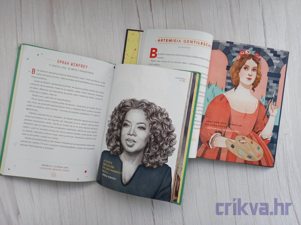 Svakako je zanimljivo da knjige donose priče o ženama 21. stoljeća, ali i onima koje su živjele stotinama godina prije. Primjerice, doznajemo detalje o kraljici Nefertiti koja je rođena oko 1370. godine prije Krista, ali i o pjevačici Beyonce koja je rođena 1981. godine. Osim njih, upoznajemo brojne sportašice, književnice, aktivistice, političarke, glumice, kraljice plesačice, poduzetnice, ali i žene s nešto rjeđim zanimanjima kao što su gusarice, rendžerice, vulkanologinje, avijatičarke, golferice te brojne druge.
