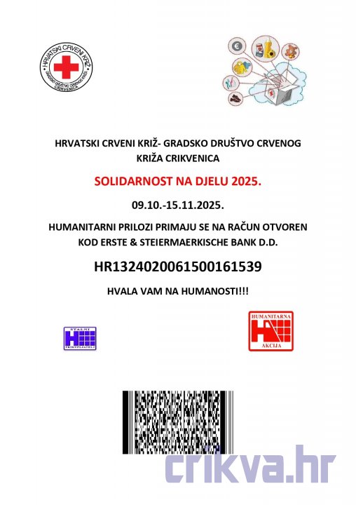 Hrvatski Crveni križ ove godine obilježava 53. godinu sabirne akcije Solidarnost na djelu 2025. u sklopu koje će GDCK Crikvenica prikupljati novčanu pomoć namijenjenu najugroženijim stanovnicima s područja Grada Crikvenice za nabavku prehrambenih i higijenskih proizvoda uoči Božića.