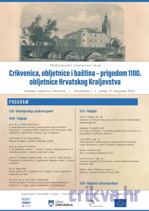 Povodom iznimno važne obljetnice – 1100 godina od uspostave Hrvatskog Kraljevstva – Crikvenica postaje domaćin međunarodnog znanstvenog skupa koji okuplja istaknute stručnjake iz područja prava, povijesti, književnosti i kulturne baštine.