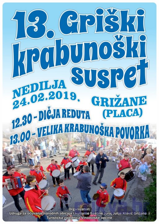 U nedjelju 24.2.2019. u Grižanama se održava 13. "Griški krabunoški susret", događaj koji govori o dugoj tradiciji krabunoških (maškaranih) običaja u Grižanama.
