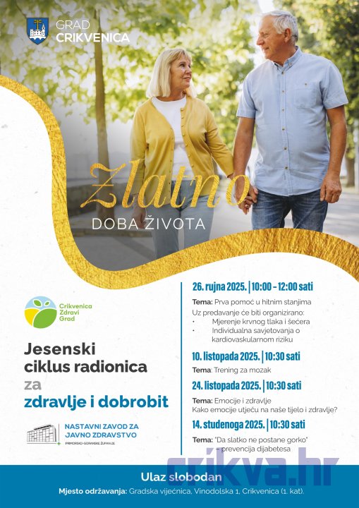 Grad Crikvenica i ove jeseni nastavlja s brigom za zdravlje svojih građana kroz niz edukativnih i interaktivnih radionica u suradnji s Nastavnim zavodom za javno zdravstvo Primorsko-goranske županije.